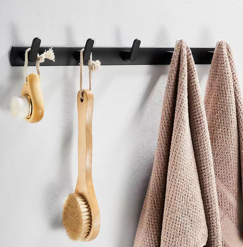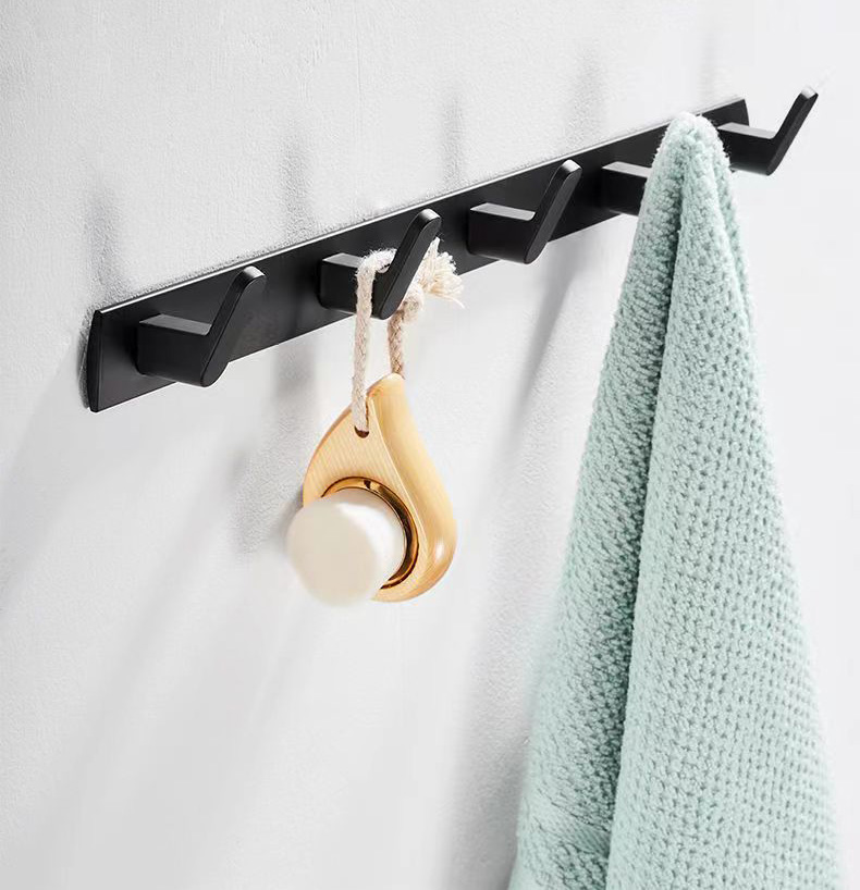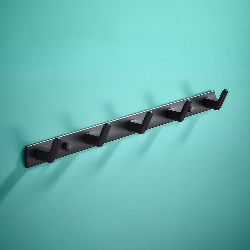 GIPTO Metal Hook for Hanging Coat Clothes Hats Bags with 5 Hooks, Space Aluminum Black Towel Rack for Kitchen Entryway Bathroom Bedroom